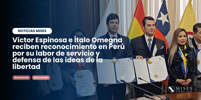 Lima, Perú – Durante una ceremonia oficial realizada en el Congreso de la República del Perú, los representantes del Instituto Mises Cono Sur, Víctor Espinosa Loyola, Director Ejecutivo, e Ítalo Omegna Vergara, Jefe de Vinculación, fueron distinguidos por su destacado aporte en la promoción de la libertad, la democracia y los derechos fundamentales en América Latina.