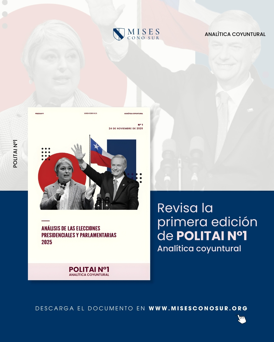 El Instituto Mises Cono Sur lanzó el primer número de POLITAI. Análisis Coyuntural, una nueva sección dedicada a examinar los principales acontecimientos políticos del país desde una perspectiva rigurosa y liberal. Su edición inaugural ofrece un completo análisis de las elecciones presidenciales y parlamentarias del 16 de noviembre de 2025, marcadas por la alta participación (85%) y una fuerte reconfiguración del mapa político chileno.